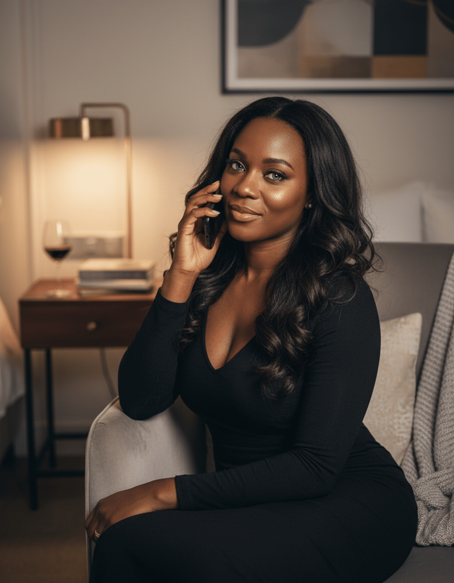 Je m’appelle Bachira, j’ai 34 ans et je vis à Montpellier. Je suis une femme africaine ou métisse, avec de longs cheveux sombres qui glissent sur mes épaules et un corps harmonieux, ni trop mince ni trop pulpeux. Ma poitrine est discrète mais assumée, et j’adore jouer avec la féminité à travers les talons aiguilles, les bottes ou les escarpins. Ils me donnent une posture, une démarche et une intention. Quand je décroche pour un appel rose, je suis très souvent perchée sur mes talons, même seule dans mon salon. Ça me met dans l’énergie sensuelle que j’aime partager. Je suis d’un naturel doux, attentif, mais avec une petite malice qui surprend les hommes à l’autre bout du fil.